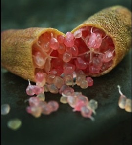 O seu interior não se apresenta em gomos, mas é constituído por pequenas bolinhas que fazem lembrar o caviar de origem animal, daí o nome que lhe foi dado. A sua popularidade tem vindo a crescer e cada vez mais pessoas querem experimentar ou cultivar este fruto australiano.