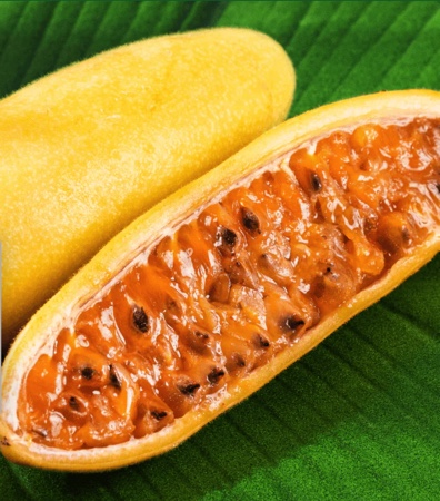 A banana-maracujá é uma planta trepadeira perene. Seu fruto é longo, amarelo e alaranjado. Caracteriza-se por um sabor amargo.