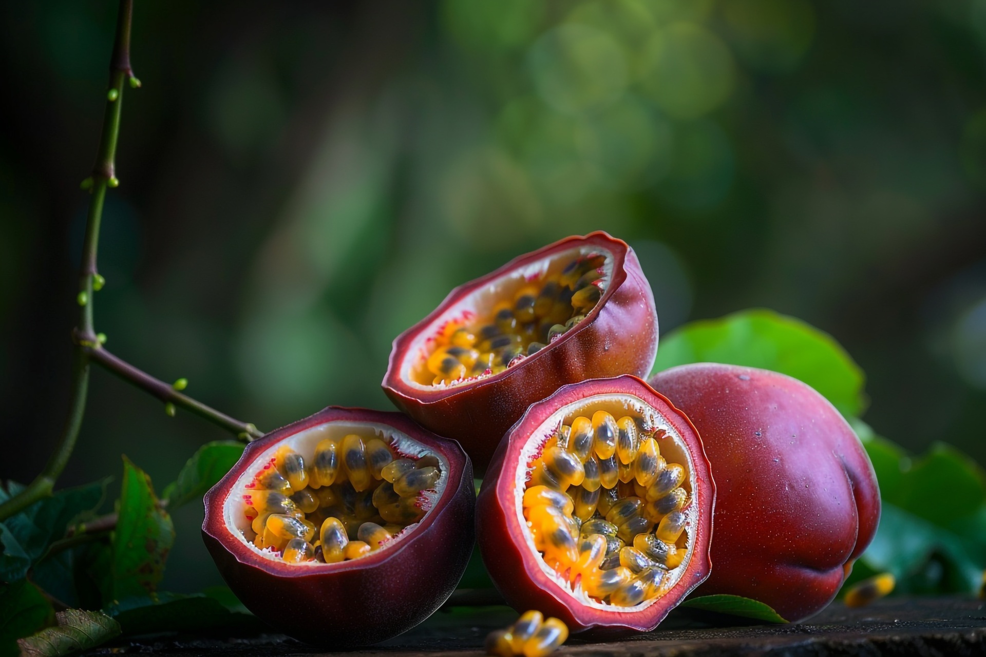 O maracujá roxo é uma planta trepadeira de folha perene. O seu fruto é redondo de coloração roxa e polpa alaranjada. Caracteriza-se por um sabor doce.